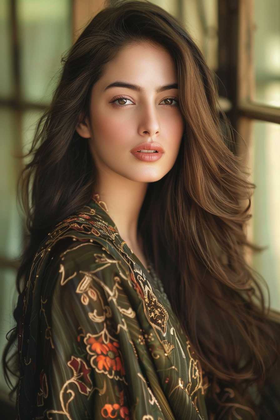 Turn heads in this richly detailed kurta crafted on a deep forest-green base with ornate floral embroidery in burnished gold, marigold, and wine tones. The fluid drape and luxurious sheen give it an effortlessly dressy vibe—perfect for festive dinners, weddings, or elevated everyday.